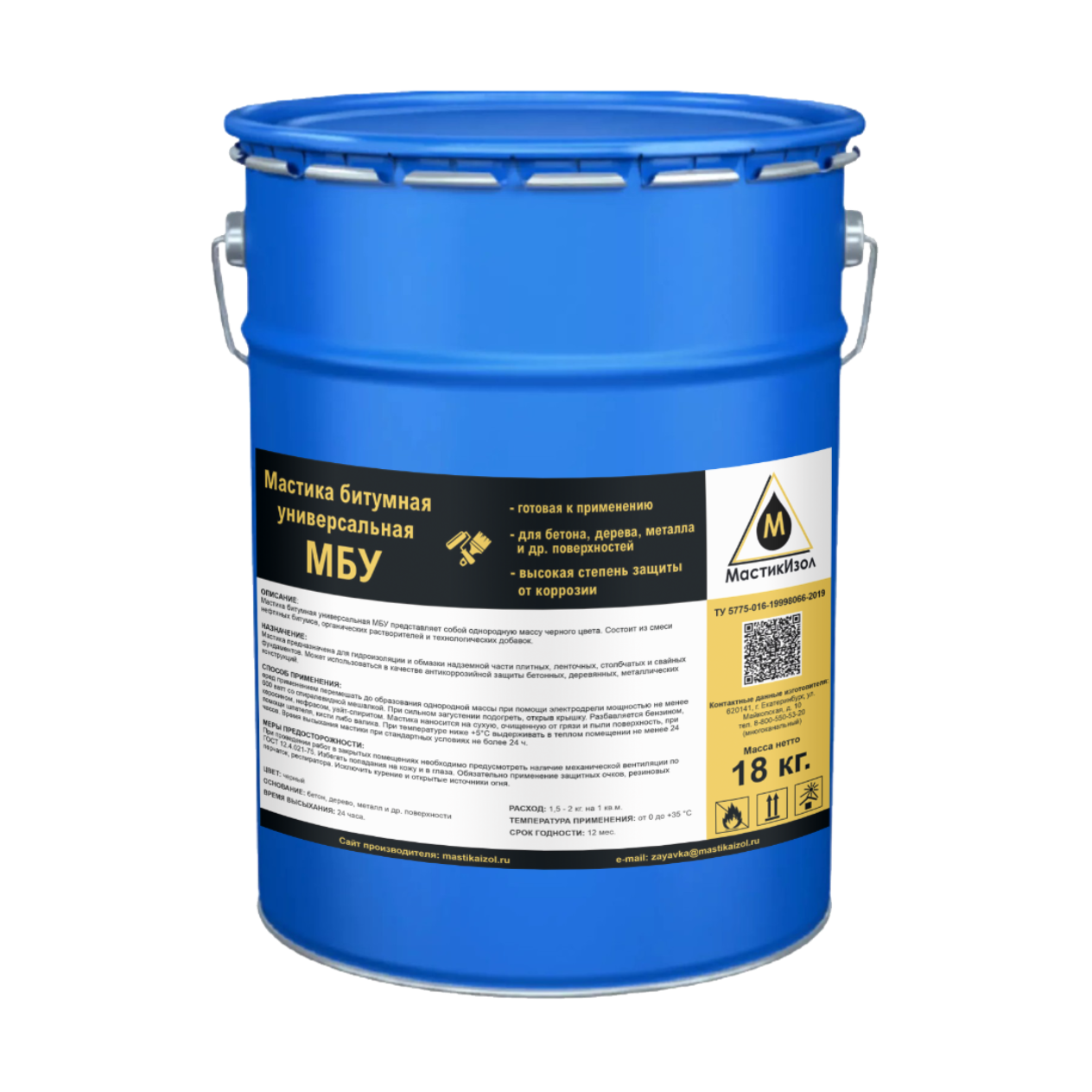 Универсальная битумная мастика МБУ – это однородный вязкообразный материал черного цвета. Состоит из качественных нефтяных битумов, пластификаторов, а также содержит антисептические и антикоррозийные элементы и органические растворители. Оптимальное сочетание компонентов обеспечивает этому продукту превосходные химико-физические свойства и востребованность.